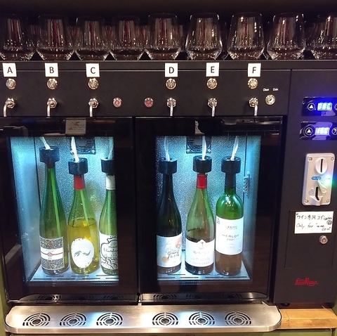 専用のコイン式サーバーがあり、地元余市・仁木のワイン、北海道のワインをテイスティングサイズ(40cc)で白・赤ワイン各3種類ご用意しています。