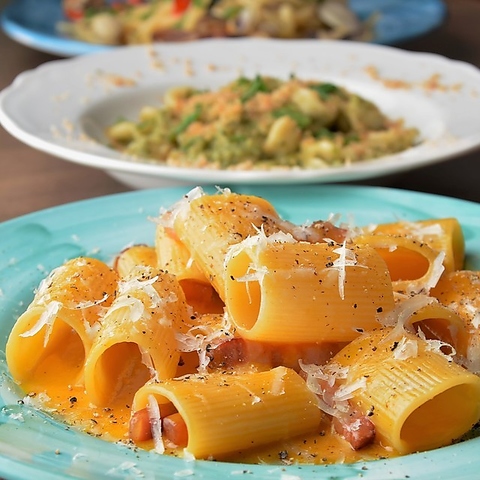 本場ローマ仕込みのカルボナーラは、卵とペコリーノチーズを使用し、濃厚で深いコクをお楽しみいただけます。パスタはイタリアから取り寄せた素材を使用し、アルデンテに仕上げ◎余計なクリームは使わず、本場の製法に徹底的にこだわっています。シンプルながらも奥深いイタリアの伝統的な美味しさをぜひご賞味ください。