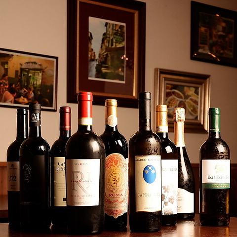 厳選されたイタリア産ワインを多数ご用意!料理とのマリアージュを楽しみながら、心地よいひとときを◎