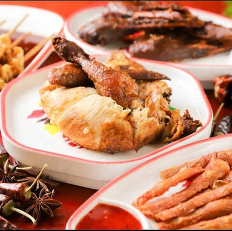 当店のお料理は中国から輸入したスパイスや食材を使用。看板メニューの串焼きや焼肉と合わせて楽しむ、自家製の調味料やソースはまさに中国の東北の味を再現しております。