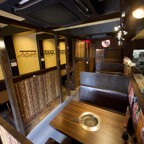 広々空間!安心の焼肉時間を!広々テーブルと無煙ロースターで匂いの心配もなし!家族みんなでゆったり過ごせる安心の焼肉時間をご提供!広めのお席でゆったり楽しめるのでお子様連れでも安心◎大人数のご利用も可能ですので気分やシーンに合わせてお使いいただけます!