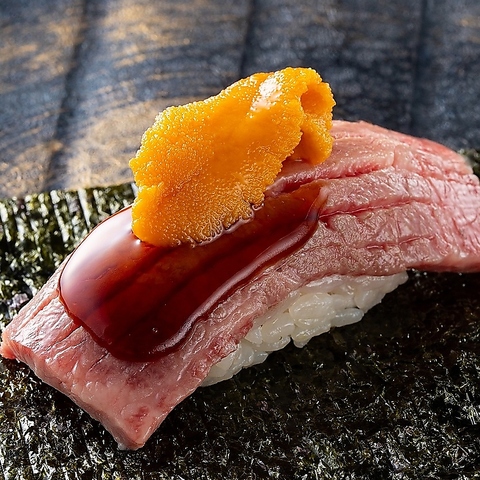 厳選した上質な和牛の大トロ部位を炙り、香ばしさととろける食感を一口で堪能。濃厚な旨みが口いっぱいに広がる贅沢な一貫です。