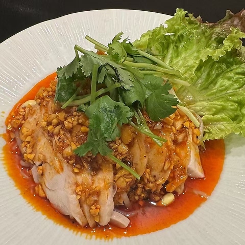 一口食べれば、鶏肉のジューシーさと特製のタレが絶妙にマッチし、思わず唸ってしまう美味しさです。バランスの取れた風味が、食べるほどに心を満たしてくれます。色鮮やかなトッピングが、見た目にも楽しさを加え、食欲を刺激します。