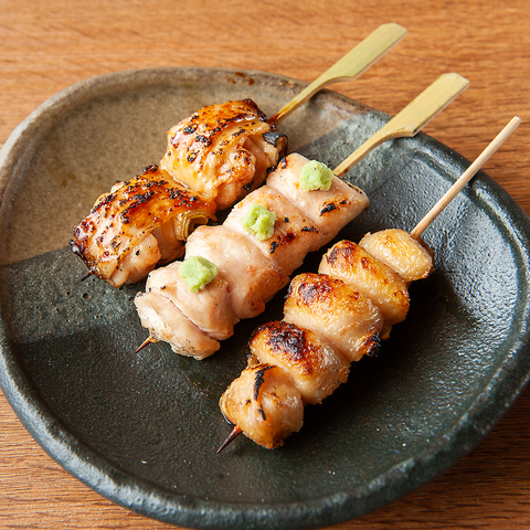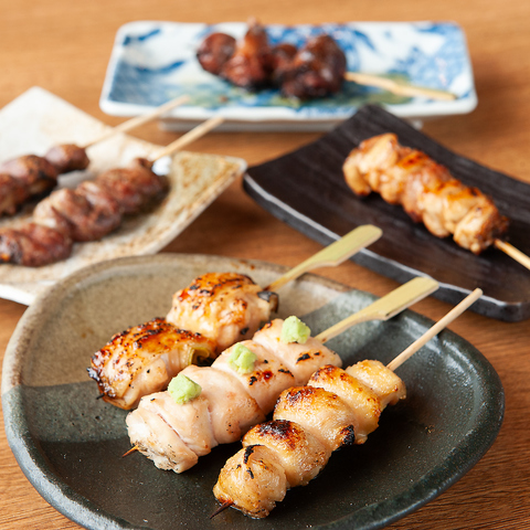 当店の焼き鳥は産地にこだわり、厳選した鶏肉を使用しております。高温の備長炭でしっかり焼き上げることで、外は香ばしく、中はふっくらジューシーな仕上がりに◎炭火ならではの香りと旨みが凝縮された焼き鳥は、一口ごとに鶏本来の美味しさをしっかりと感じていただけます。