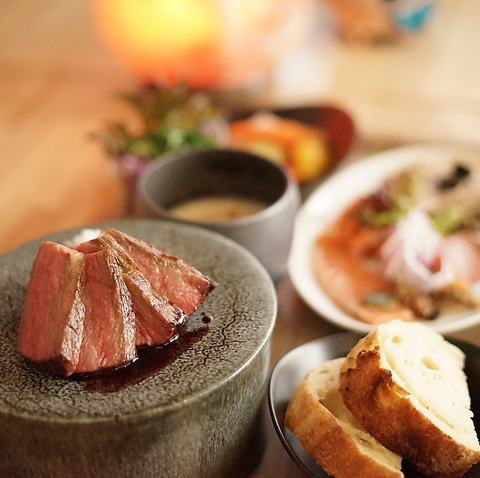 旬の素材をふんだんに使ったシェフ自慢のコース。とろける赤身肉のユッケに濃厚な卵黄を絡めて。芳醇な赤ワインと共に、五感を満たす至福のひとときをお楽しみください。前菜からメインまで、一皿一皿が特別な夜を演出します。大切な人との記念日や、ちょっと贅沢なディナーにぜひ。