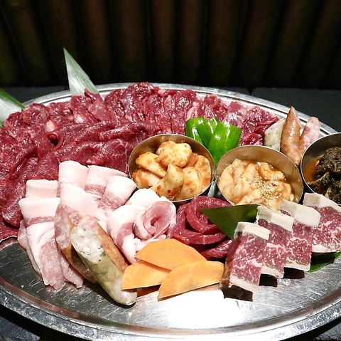 大人5、6人前。約1000g 8,888円 大人数でのお食事にオススメです!カルビ、ロース、ホルモン3種 サーロイン、県産豚バラ、県産豚ロース、あらびきソーセージ3種の豪華盛り合わせです!