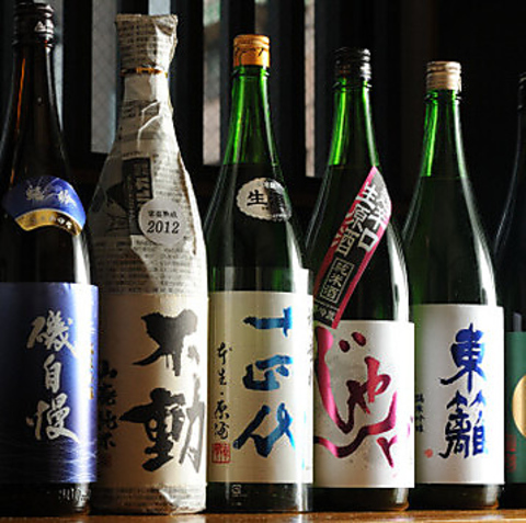 全国各地から厳選したこだわりの日本酒や焼酎は、目新しい銘柄を中心に常時10種以上をご用意しています。