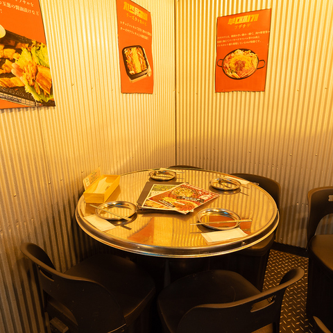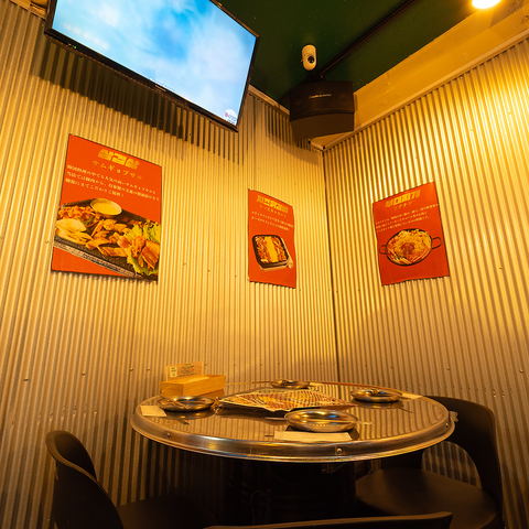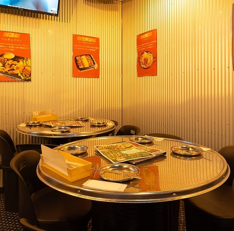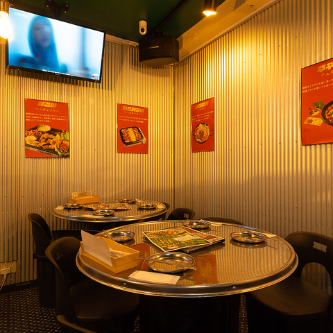 一体感のある丸テーブルを囲んで、本場韓国の屋台気分で盛り上がる!着席時は最大24名様、立食スタイルであれば最大30名様まで収容可能です。レイアウト相談も承りますので、人数が多い集まりにぴったりです。テレビモニターも完備しており、賑やかなパーティを演出します!