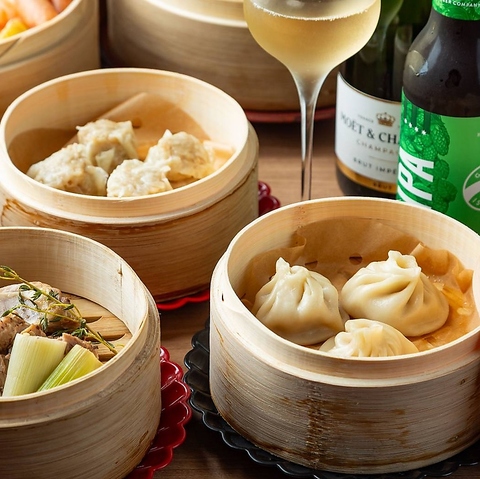 自慢の小籠包(759円)は、旨みを閉じ込めた肉汁たっぷりの蒸し立て熱々。シャンパンや美酒との相性も抜群で、大人の贅沢なひと口タイムにぴったりです。
