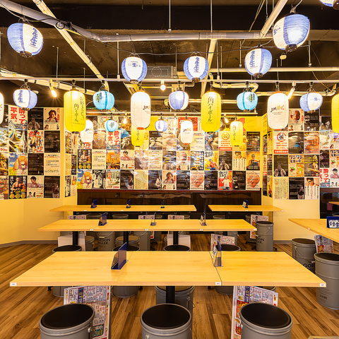 【大衆居酒屋】お祭り気分になれると好評の内装です!自慢の居酒屋料理と激安ドリンクを何杯でもゆったり堪能出来るように、2名席、4名席席、6名席席などレイアウト様々に、多種多様なお席をご用意しております!!様々なシーンに対応可能!名物の焼餃子は絶対食べてくれトリー!喫煙可