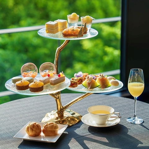 フルーツや木の実を使用したスイーツ、セイボリーなど、その時季ごとに変化するアフタヌーンティーをお楽しみいただけます。お飲み物は香り高い「KUSUMI TEA」やシングルオリジンティーなど、約20種類以上をご用意。