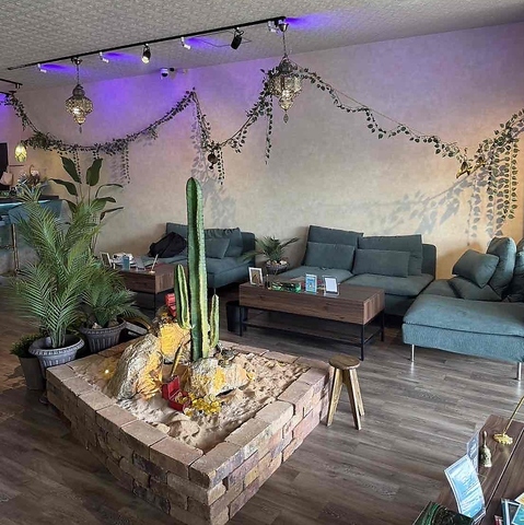 シーシャエリアはカフェエリアと雰囲気が異なり大人の雰囲気、抜群の居心地の良さでお客様をお迎えいたします。その拘りは、各席からの撮った際の写真映え、ソファの座り心地、色使いなど多岐にわたります。