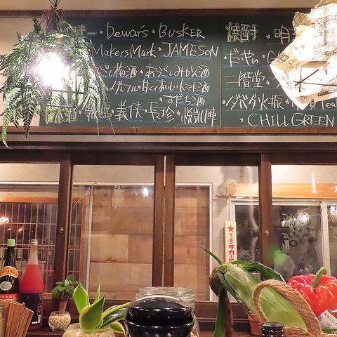 その日のメニューは店内の黒板にございます。お酒のラインナップと、日替わり・季節替わりのおすすめメニューが載った黒板から、その日の気分に合わせてご注文ください♪