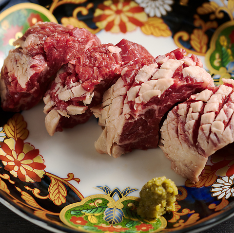 - (1)一般的に食肉の生食は食中毒のリスクがございます。(2)お子様、高齢者の方、その他食中毒に対する抵抗力の弱い方は生食をお控えください。