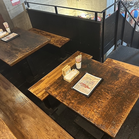 団体様大歓迎!レトロとネオの融合したテーブル席は広々の作りとなっております。
