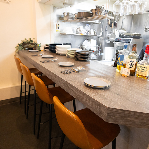 臨場感溢れるカウンター席では、シェフの手さばきを間近に眺めながら、おひとり様でも気軽に本格的なお食事が楽しめます。ふらっと立ち寄れるアットホームな空間なので、お仕事帰りのサク飲みや一人飲みも大歓迎です。こだわりの一皿とお酒をじっくり味わいながら、ゆったりとした贅沢な時間をお過ごしください。