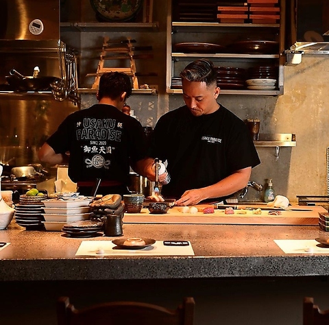 お洒落で重厚感ある空間が自慢な当店◎広々としたテーブル席や、接待やプライベート利用におすすめな個室のお席をご用意しています。中でも人気なカウンター席は、調理の様子をお楽しみいただけるので叔父はもちろん、視覚でも楽しめるのでおすすめ!お1人様やデートに最適です☆