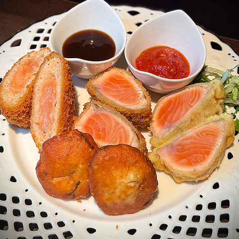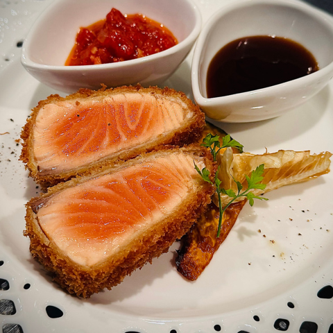 オーストラリアのタスマニア島。世界遺産の豊かな自然環境で養殖されたのが、タスマニア産アトランティックサーモン。水揚げから生の状態をキープし豊洲市場より入荷。身が締まり脂は上品で臭みが少ないのが特徴で、口の中で解けるような味わい。そんなこだわりのサーモンを、様々な調理によりお召し上がりいただけます。