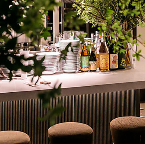カウンター席には大きな植物やお酒の瓶、食器などが置いてあり、ここが渋谷・道玄坂近くにあることを忘れさせてくれます。