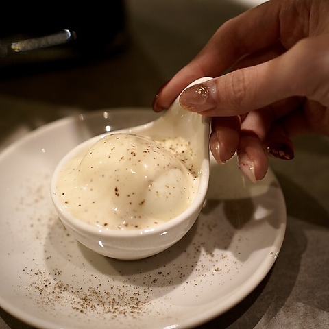 当店の「ロメインレタスの焼きシーザーサラダ」は、トロトロの卵と香ばしいベーコンが絶妙に絡み合い、野菜のシャキシャキ感も楽しめる一品です。おすすめは「沼るハニーチーズムース‐バゲット‐」。カリカリのバゲットに濃厚なハニーチーズをたっぷりつけていただくと、やみつきになる美味しさです。そ