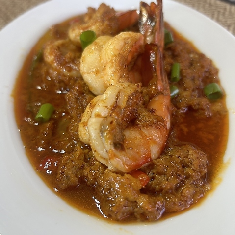 プリプリのエビとたっぷり野菜が嬉しい「エビのポンカリー」!一口食べれば、野菜の旨みとスパイスの香りがじんわり広がります。食べ応えも抜群で、体も心も満たされる一皿です。クセになる味わいをぜひご堪能ください♪