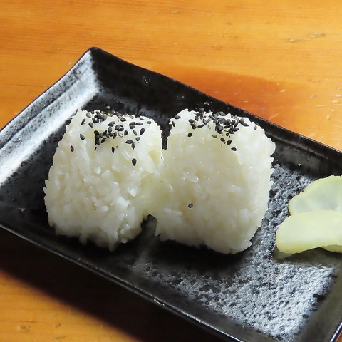 骨付鳥の旨みを引き立てる、骨付鳥に合う塩むすび2個。締めにも、お酒の合間にも◎