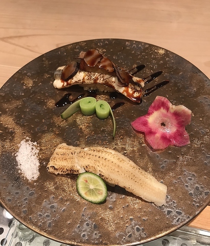 当店のコース料理は、つまみ(創作料理)と握りを贅沢に楽しめる内容です!毎日届く鮮魚を昔ながらの赤酢のシャリで1貫ずつ丁寧に提供。また大将との会話も交えながら、至福のひとときを味わえます。特別な食体験をお楽しみください。