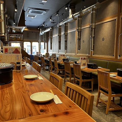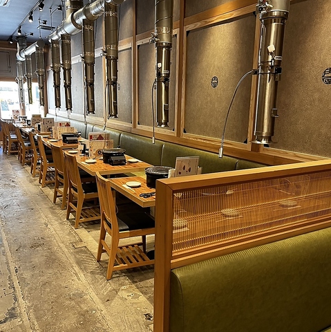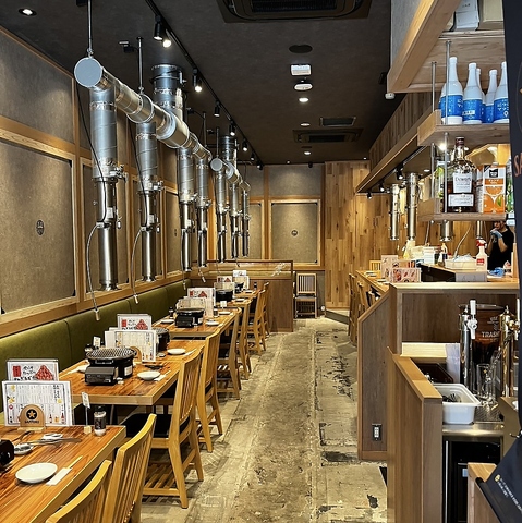 【一人焼肉にぴったり】オープンキッチンで開放感のあるカウンター席。注文もしやすく、気軽にふらっと一人や二人で焼肉を楽しむときに最適なお席です。各席に排煙ダクトを設置しているので煙や匂いも気になりません♪