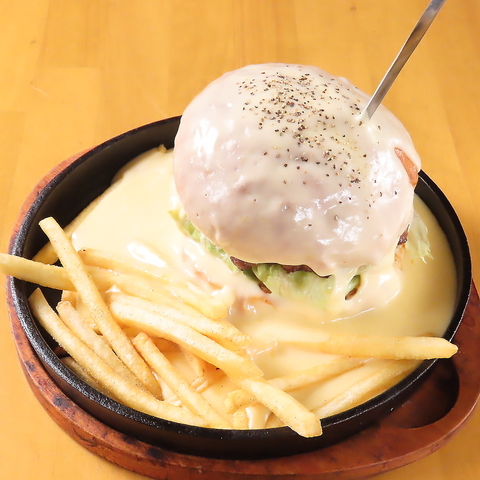 チーズ好きのお客様からのご要望で生まれたラクレットチーズの鬼がけオプション!ハンバーガーにもハンバーグにもおかけいたします♪チーズ好きの方、罪悪メシをお探しの方必見です!