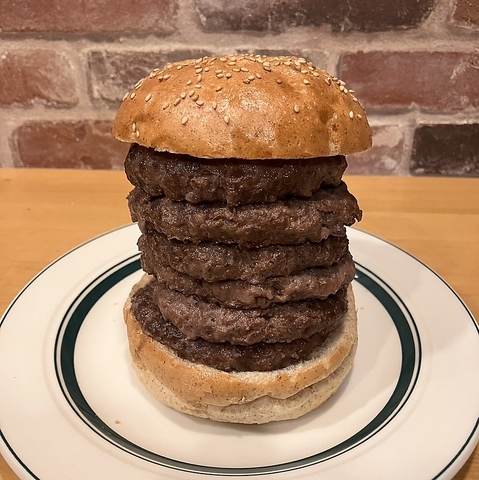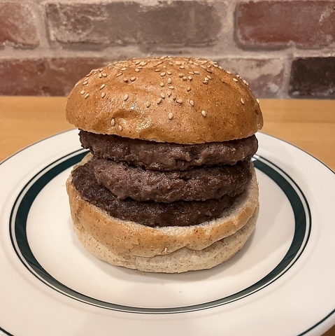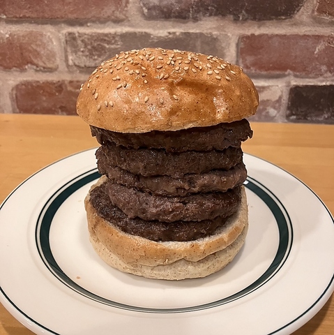- プラス料金でハンバーガーの追加パティ※パティを積んで自分のサイズにしちゃおう/チーズも積めるよ!