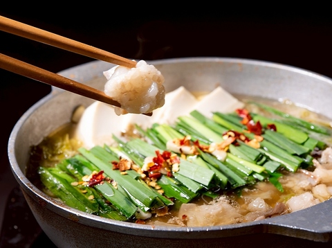 国産もつと、研究に研究を重ねて出来上がったにんにくの効いた出汁で作るもつ鍋は一度食べたらやみつきに!