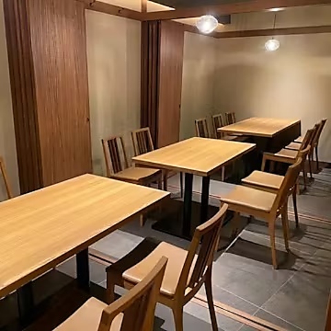 店内は木の温もりが溢れ、柔らかな照明が心地よい雰囲気を演出。テーブル席も広々としており、ご家族でのお食事やご友人との語らい、ビジネスの場にも最適です。喧騒を離れた落ち着きのある空間で、上質な料理とともにくつろぎのひとときをお過ごしください。