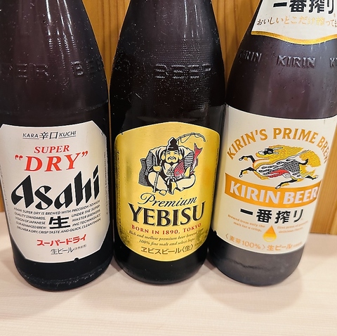 アサヒスーパードライ、キリン一番絞り、エビス3種類からお選びいただけます。