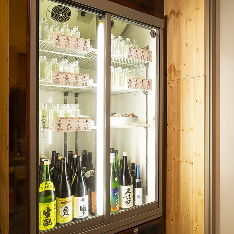 飲み放題の出てくるのが遅い。。。そんな声が出ないように毎朝日本酒を瓶詰めに。日本酒の出てくる速度最速です。多数の日本酒がある為分かりやすく飲み比べができるように日本酒特徴カードもご一緒に提供しております。