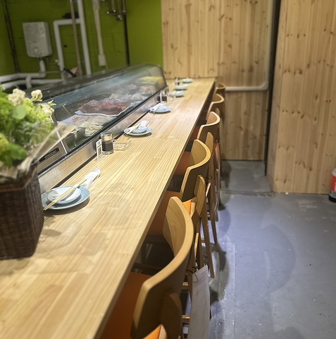 ≪BOX席≫ 緑の色合いと温かみのある木目調の内装が和の雰囲気を醸し出す落ち着く空間です。4名掛けのテーブルが3卓あり、友人や家族とゆったりとした時間を過ごせます。寿司屋らしい雰囲気の中で自慢の寿司を味わいながら、リラックスしてください。グループでの利用にもピッタリな店内で心温まる食事をお楽しみください!