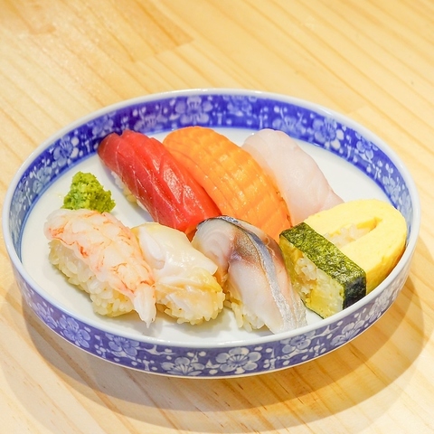 1貫180円からお好みで注文可能な本格寿司。玉の7貫握りは1000円と超お得!