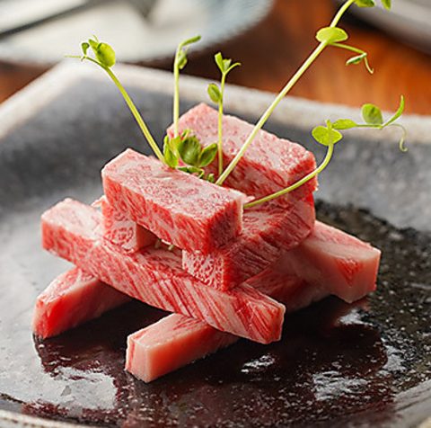 霜降りのバランスがちょうどいいおすすめカルビをご用意しております!厚切りの極上カルビもジェンガ仕立てでご提供!