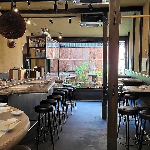 【古民家をリノベーションした古風な雰囲気】10年間人が住んでいなかった長屋を改装して作られた店内は、古き良き和風の空気が味わえます。カウンター席とテーブル席があり、どちらも京都の古い木材を使用して造り上げていますので、しっとりした雰囲気をご堪能いただけます。古民家で美味しいお料理とお酒をご賞味ください