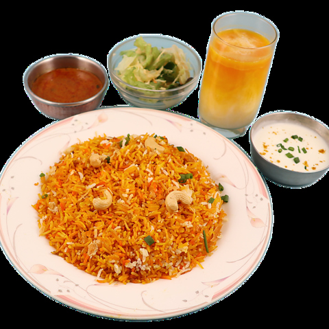 バスマティライス(インドの香り米)を使用した本格派のビリヤニ!!スパイスのコクと旨みがご飯と具材にしみ込んだ贅沢な一品♪とても濃厚で味わい深いご飯です。