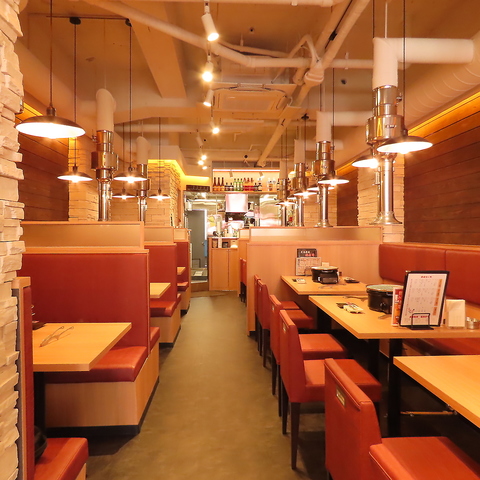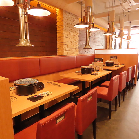 壁が木でできているため、自然のぬくもりを感じつつお食事をしていただけます。また暖色系の明かりになっているので、穏やかな気持ちでお時間を満喫可能!各テーブル席に排煙装置がありますので、煙たい・服に臭いが染みつく心配は不要です。リラックスしながら目の前のお肉・お飲み物をご堪能ください!