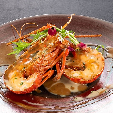 【コース料理】前菜などのお料理4皿、伊勢海老1匹分(中サイズ)のソテー、デザート、食後のお飲み物。※当店ではアラカルトのご用意はなく、コース料理のみのご提供となっております。