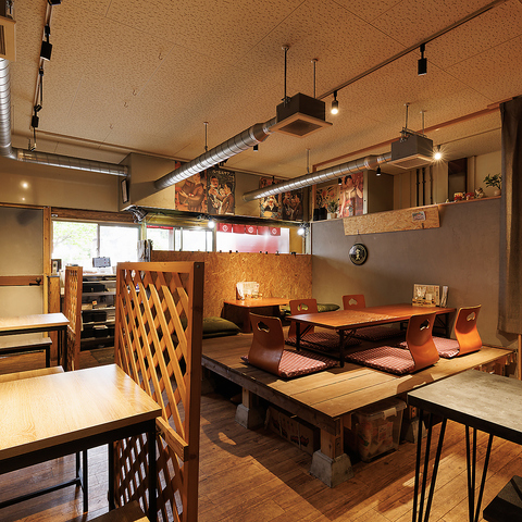 【ゆったりとくつろげる座敷席◎】当店の座敷席は、6名掛けの大きなテーブルと2名掛けの小さなテーブルが完備されています。家族や友人と一緒に、活気のある雰囲気の中でお食事をお楽しみいただけます。また、テーブルを結合することで最大12名までのグループにも対応。特別な集まりやお祝いの席に最適です!
