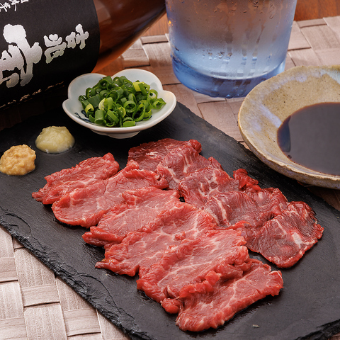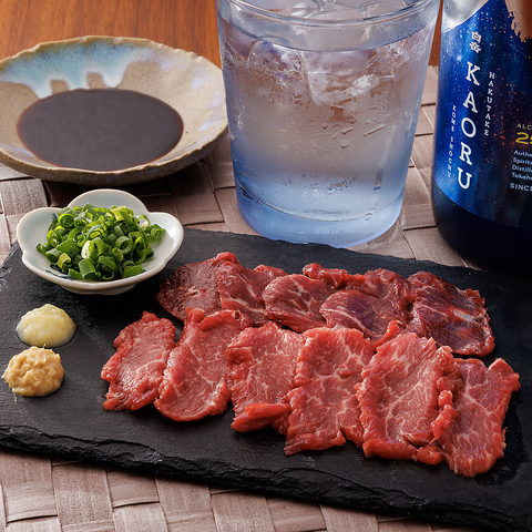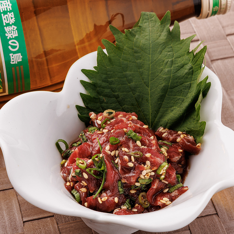 新鮮な馬肉を使用した馬刺しは、シンプルにそのまま食べても、軽く炙っても美味しい一品です。コリコリとした食感と豊かな風味が特徴で、肉の旨味がしっかりと感じられます。特製のたれや薬味と一緒に楽しむことで、さらに美味しさが引き立ち、お酒のお供にも最適です。