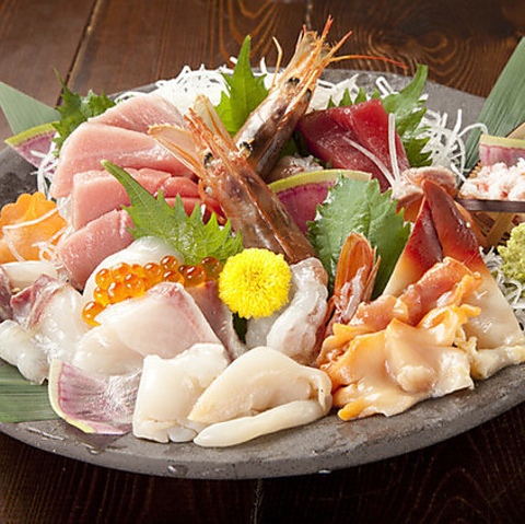 ・大極上お刺身盛り合わせ5980円(税込)・特上お刺身盛り合わせ3780円(税込)・上お刺身盛り合わせ2580円(税込)・お刺身盛り合わせ1280円(税込)