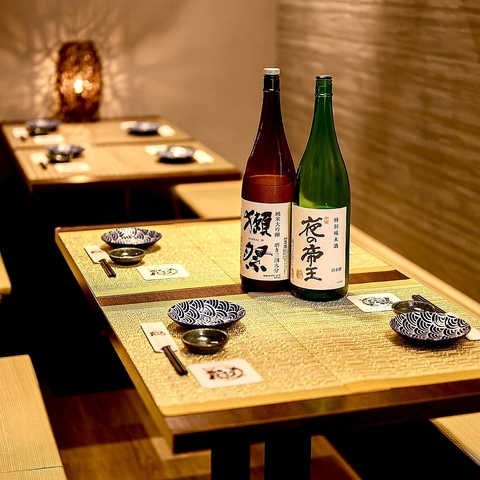 和の趣き溢れる店内は大人の為の落ち着いた雰囲気となっております。4名様でご利用可能なテーブル席は日本橋での接待や女子会、合コンなど各種宴会に最適なプライベート 半個室空間♪お得な宴会コースプランもご予算に合わせて3000円~ご用意。誕生日や記念日にお得なサプライズ特典もご用意しております。