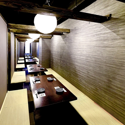 和の趣き溢れる店内は大人の為の落ち着いた雰囲気となっております。1Fフロアは30名様までの貸切可能!の日本橋での接待や女子会、合コンなど各種宴会に最適なプライベート半個室空間♪お得な宴会コースプランもご予算に合わせて3000円~ご用意。誕生日や記念日にお得なサプライズ特典もご用意しております。