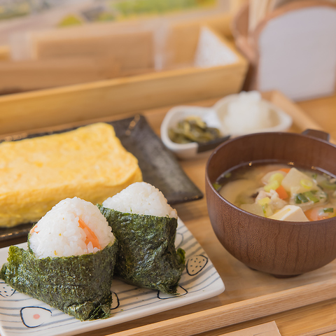 当店自慢の「出汁巻き」は、美山産の新鮮な卵を使用しており、その豊かな風味と柔らかな食感が特徴です。しっかりとした出汁が卵に絡まり、口の中で優しく広がる味わいは、一度食べたら忘れられません。おにぎりやからあげ、温かい味噌汁、漬物がセットになったランチプレートは、食べ応えも抜群です◎