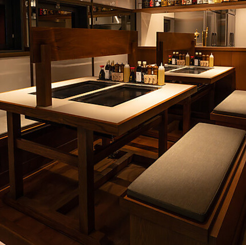 お席では鉄板を囲んで楽しむスタイルで、調理風景を見ながら五感が刺激されます。英語対応可能スタッフの配置やポケトークの活用で、外国人観光客の方にも安心して楽しんでいただける環境を整えておりますので、お気軽にご来店ください。