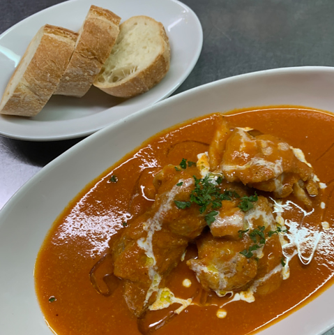 鶏もも肉のトマト煮は、当店だけの自家製トマトソースを使用。しっかりとしたコクがあり、鶏肉と絶妙に絡み合います。アツアツの状態で提供され、食欲をそそります。デートや女子会、グループ宴会など、さまざまなシーンで楽しめる一品です。ぜひ、特別なひとときをこの料理でお過ごしください。
