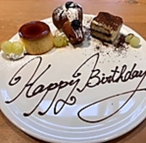 お祝いや記念日は是非RORNOで♪メッセージ入りサプライズドルチェプレートご用意できます♪